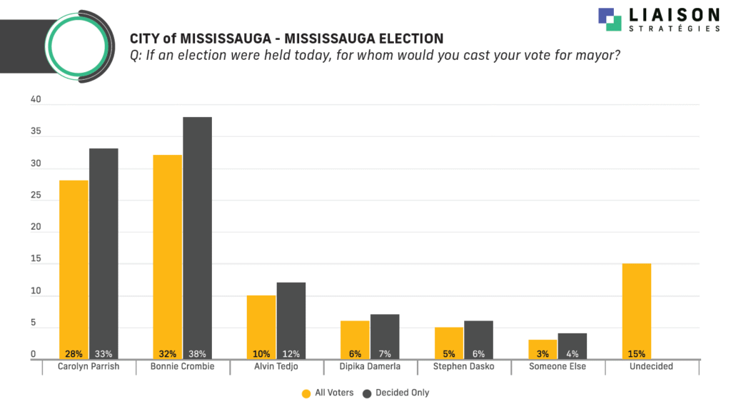 “I think part of what we’re seeing is that Bonnie Crombie’s brand is still strong enough to force a competitive race in Mississauga,” says Liaison’s David Valentin, in an interview with MPulse Mississauga. “Parrish, for her part, is polling around the same level of support she received in the by-election and hasn’t been able to expand her coalition.”